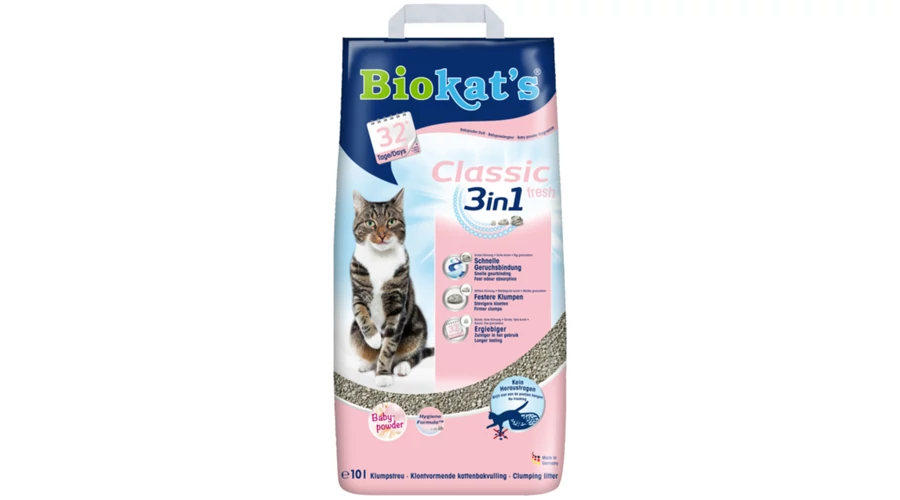 Biokat's Classic Fresh 3in1 Baby Powder alom 10L ideális választás, ha megbízható és kiváló minőségű terméket keresel a(z) Alom kategóriában. Fedezd fel további kínálatunkat a PetPakk.hu – Állateledel, kerti tó, szúnyogriasztó webáruház webáruházban!
