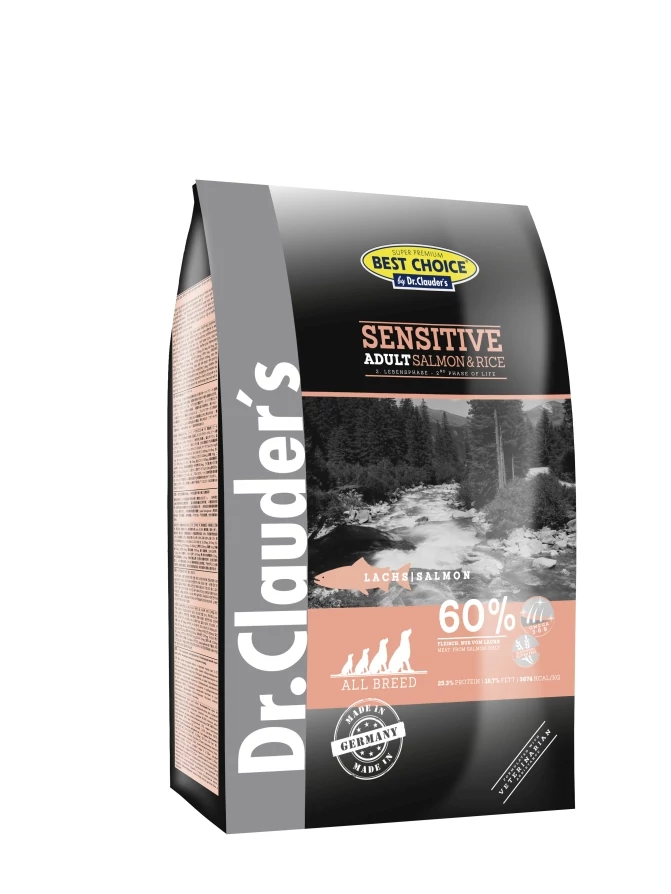 A Dr.Clauder Best Choice Salmon & Rice tökéletes felnőtt kutyák számára, ételekkel szemben érzékenyek és étvágytalanok.