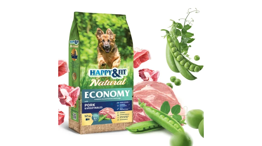 ✅ Termék neve: Happy&Fit Natural Economy Adult with Pork and Vegetables 12kg