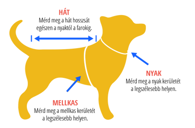 Mérni annyi, mint tudni! A megfelelő méret kiválasztásához fontos, hogy megfelelően mérd meg kedvencedet. A megfelelő méret vétel otthon is könnyedén elvégezhető, csak egy puha mérőszalagra és természetesen a kutyára van szükség.