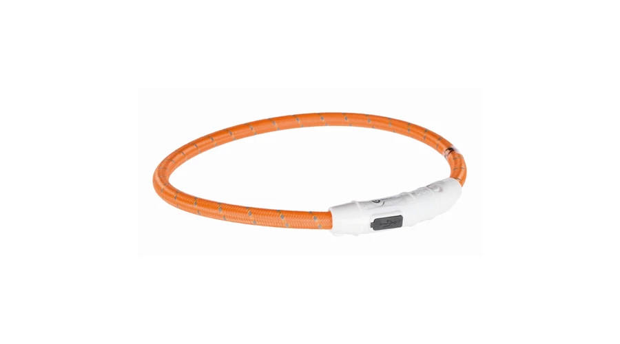 A Trixie világító, USB-ről tölthető nyakörve egy töltéssel körülbelül 5 óra villogó fényt, vagy 3 óra folyamatosan világító fényt biztosít, hiszen fontos, hogy sötétben és rossz látási viszonyok mellett is szemmel tarthassuk kedvencünket. Számos baleset elkerülhető, ha fényvisszaverő, világító, vagy villogó eszközökkel szereljük fel őket. TPU/Nylon bevonatú, így mérsékelten cseppálló. Akár egy mozdulattal felhelyezhető és méretre vágható.